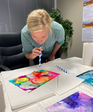At the end of the day, the students got to get a bit arty with some alcohol ink art (no, not the drinking type) to create some masterpieces that they got to take home.